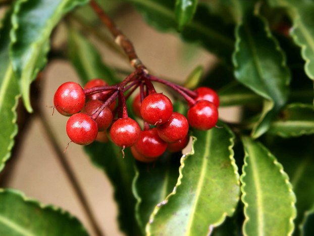 我が家の 庭にぶら下がっているマンリョウの実です。来週頃から気温がぐーんと低下