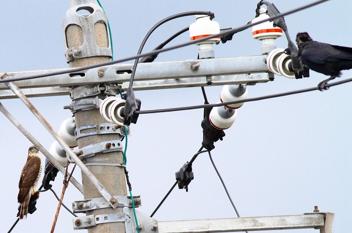 (写真2)写真右に追撃してきたハシボソガラスがとまっています。