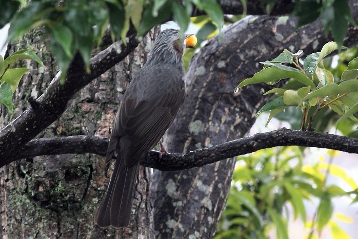 くわえているのは、未だ熟していない冬珊瑚(ふゆさんご、Christmas cherry)