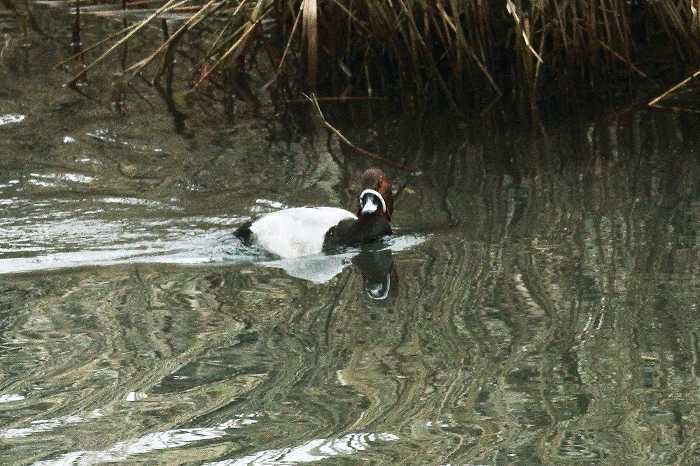 1羽の♂が、顔に此の様な飾りをはめて泳いでいましたので、びっくりして撮り