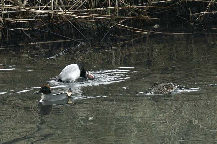 コガモは特にびっくりした風でもなく、普通に近くを泳いでいました。