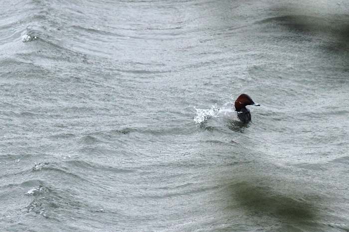 ♂です。強風の中、波に突っ込んで行きながら泳いでいます。