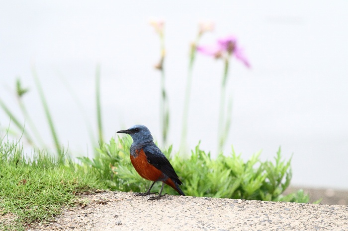今年はイソヒヨドリ♀が保持している縄張りにイソヒヨドリ♂が入り込んできて、