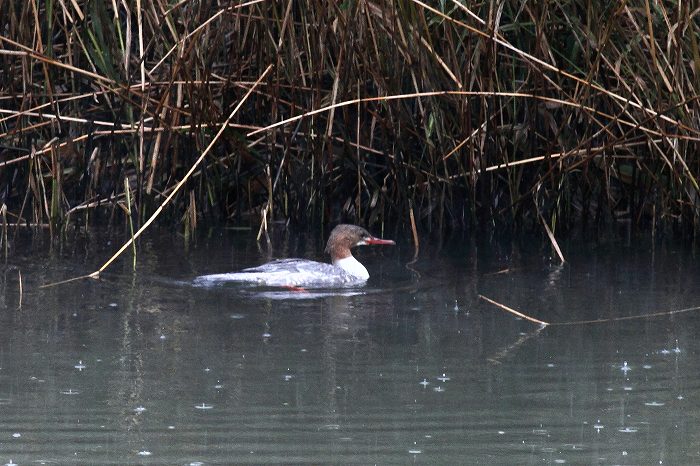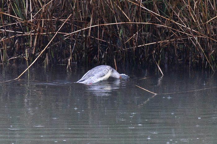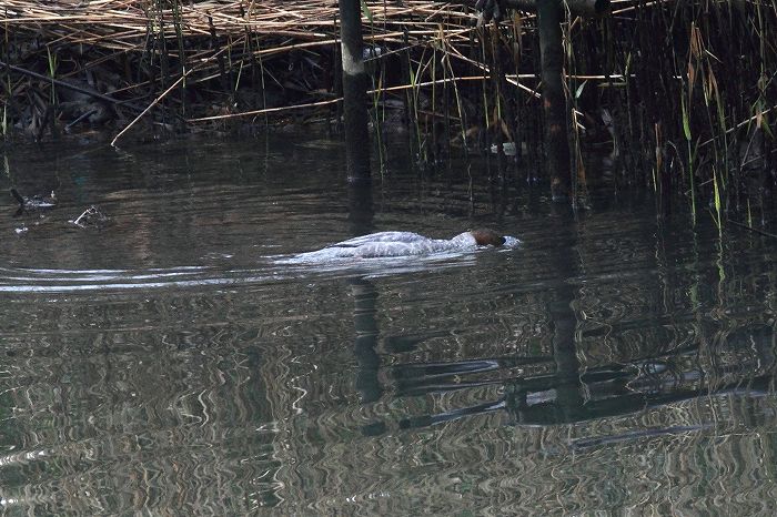 普通に泳いでいる姿です。後頭部の方に冠羽が見られます。
