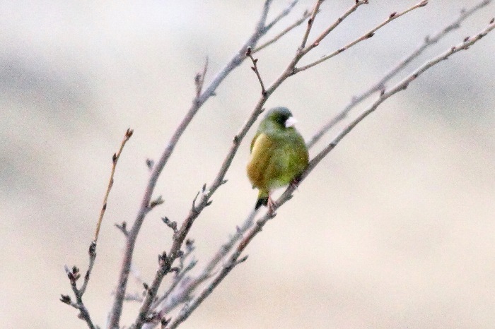 2012年 カワラヒワ 001 戻る 撮影(03/11) 2011年の初登場は03月07日でした。 スズメと同じぐらい大きさです。スズメよりほんの気持ち程小さいか、とも感じ ます。九州以北で繁殖する留鳥です。 翼と尾の外側に黄色い斑があります。嘴は太く、肉色です。 早朝の未だ薄暗い時間帯での撮影でしたから、なんとも拙い画です。 (Canon) EOS 7D EF 400mm F5.6L USM