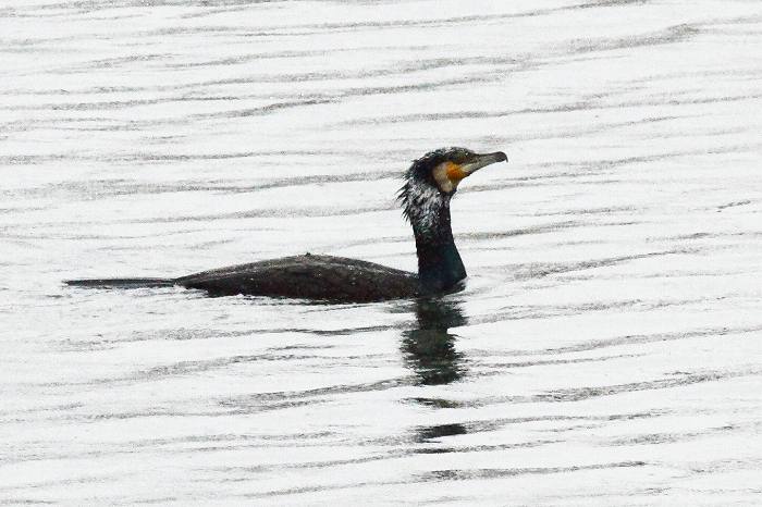 婚姻色に変身したカワウの登場です。顔の黄色い裸出部も色が橙黄色に変色