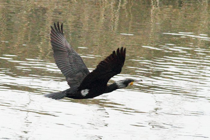 川に浮いていたカワウが飛び立ちましたので、いつものように、その姿を撮り