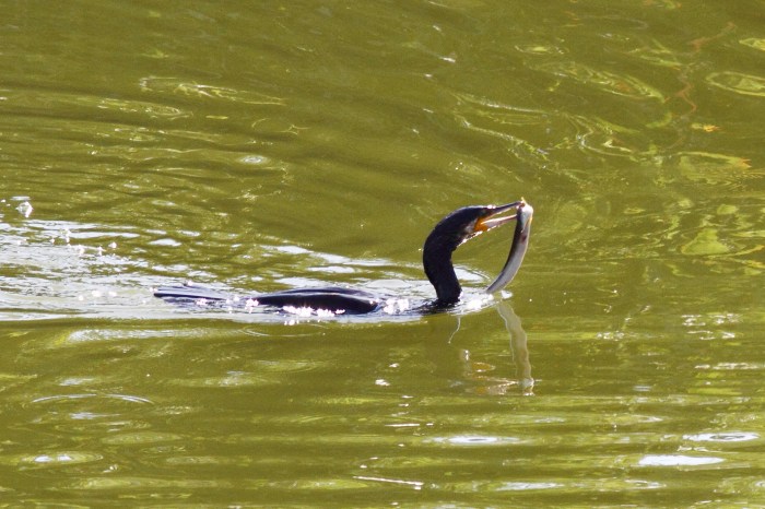 2012年 カワウ 011 戻る 撮影(08/02) 天然のウナギは貴重品になりました。今後は我々の口に入るのは、主にアフリ カ産になるのではなかろうかと思うのですが、そんなウナギを平気で食べている 光景です。 (Canon) EOS 7D EF 400mm F5.6L USM