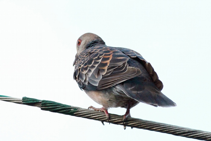 2012年 キジバト 008 戻る 撮影(08/02) このキジバト(ヤマバト)は我が家の近くで生まれ育った個体だと思います。 やっと番の生活になったかと思うと、またすぐに単独生活になります。 山道をドライブするとキジバトは2羽で仲良く生活していることが多いと感じる のですが、里で生活するキジバトは個性的なのかも知れません。 (Canon) EOS 7D EF400mm F5.6L USM