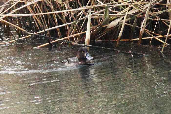 2012年 キンクロハジロ 001 戻る 撮影(01/01) 昨年12月に続いて登場です。♀です。やたらに潜って餌を食べています。此 の写真では見られませんが、小さな冠羽があります。 (Canon) EOS 7D EF400mm f/5.6L USM