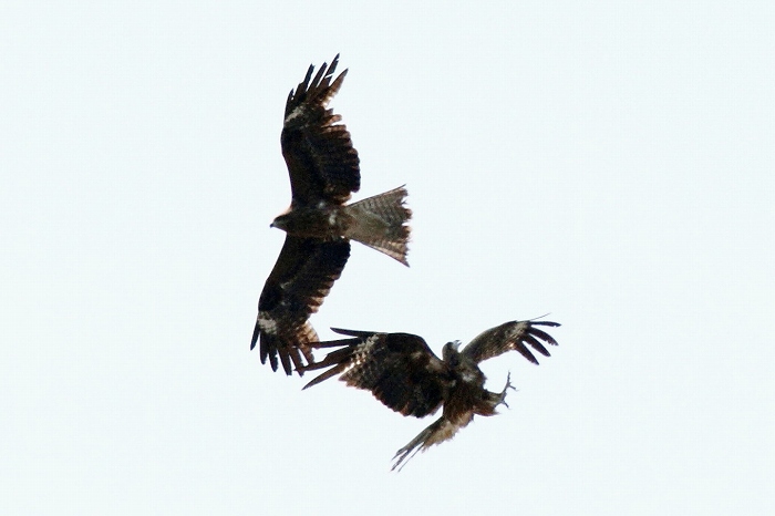 2012年 トビ 006 戻る 撮影(06/04) トンビの生き様は私にはさっぱり分かりませんが、最近仲良く一緒に空を舞っ ていた2羽の間に、別の1羽が突っこんで行き、大喧嘩になりました。 闘いの光景です。ただ、どっちがどっちなのか判別出来ません。 (Canon)EOS 7D EF400mm F5.6L USM
