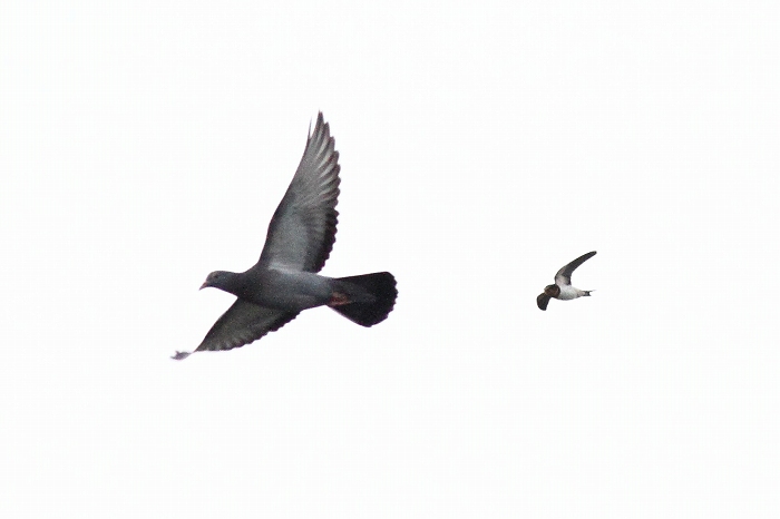 2012年 ツバメ 004 戻る 撮影(06/30) ツバメが激しくドバトを攻撃していました。近くに住んでいますので、顔見知りの 筈ですが、此のドバトがツバメを怒らせる事をしたのだと思います。ドバトの前に 出たり後ろから接近して嘴で突いたりしていました。 (Canon) EOS 7D EF400mm F5.6L USM