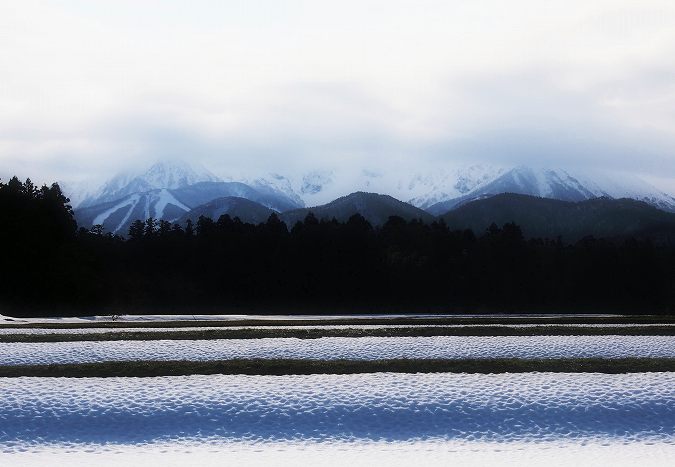 2012年 花や風景や 012 戻る 撮影(01/22) 「写真11」のドライブ中に観た光景です。やはり大山町です。 多かった積雪が解け続けている積雪の表面の光景です。明日から降雪で、し ばらくは見られない姿だと予想しますので掲載です。 「大山」は中腹より上は雲で隠れています。 (OLYMPUS) PEN E-P3 M.ZUIKO DIGITAL ED 14-150mm F4.0-5.6