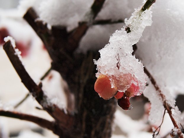 2012年 花や風景や 013 戻る 撮影(01/24) 現在鳥取市北部には大雪警報が発令中です。 我が家の庭のマユミの実です。今朝の光景です。 (OLYMPUS PEN) E-PL2 (Panasonic)LEICA 25mm/F1.4