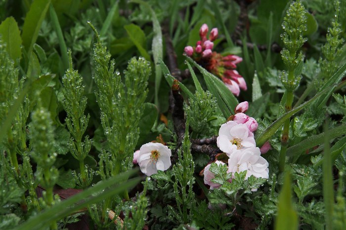 2012年 花や風景や 078 戻る 撮影(04/16) つくしより下に咲いた桜の花を撮りたかったのですが、つくしはダウンしてしま い、代わって大勢のすぎなが現れ、その間で八重桜が開花しました。 雪の重みで枝が折れ、幹から離れて地上に横たわっていた枝に咲いた桜花 です。 (OLYMPUS) E-M5 M.ZUIKO DIGITAL ED 14-150mm F4.0-5.6