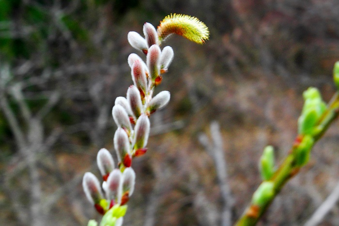 車のすぐ近くで枝を手で掴みながら撮った写真です。もう少し春は来ていない