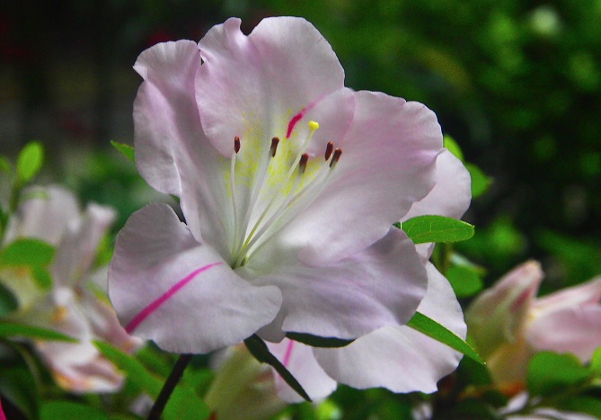 2012年 花や風景や 130 戻る 撮影(06/11) 躑躅(つつじ、Azalea)です。赤い線が入る品種です。 庭に咲いている花を載せています。 (OLYMPUS) E-P3 M.12-50mm F3.5-6.3