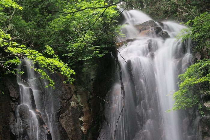 2012年 花や風景や 135 戻る 撮影(06/20) 台風4号の影響で所によっては強い雨が降ったようです。岡山県津山市「トヤの 夫婦滝」です。水量が多くて近寄ることが出来ませんでした。 やはり滝撮りの写真家に出会いました。この滝を幾度も訪れているが、こんなに 水量が豊富な姿は初めて観た、というお話でした。 (OLYMPUS) OM-D E-M5 M.ZDE 14-150mm F4.0-5.6
