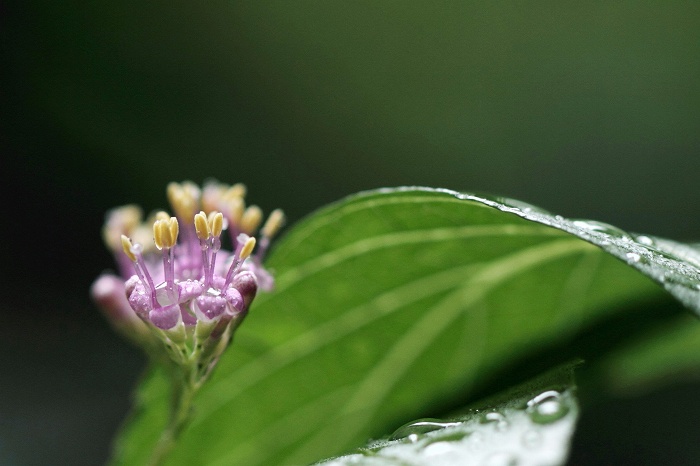 2012年 花や風景や 141 戻る 撮影(07/01) コムラサキシキブ(小紫式部、こむらさきしきぶ、 Callicarpa dichotoma)です。 まだ全開状態ではありませんが、7月に入って最初に載せる花は、これしか 見られませんでした。 朝から雨で、止み間に飛び出して撮ったものです。 (Canon) EOS 7D EF100mm F2.8L Macro IS USM