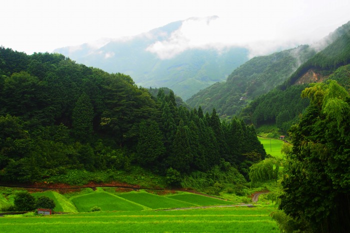 今、緑色の田んぼが綺麗な時期です。下に見える田んぼは、別の場所から