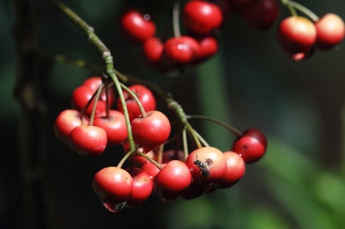 2012年 花や風景や 184 戻る 撮影(09/01) 万両(まんりょう、Ardisia crenata Sims)です。 日照り続きが原因でしょうか。上半分が少し黄色になっています。ここ数年、 こんな変色を見た記憶がありません。 渡り鳥の冬鳥が好んで食べる実ですが、今年は美味しくないかも知れません。 それどころか、落ちて無くなっているかも知れません。 (Canon) EOS 60D EF 180mm F3.5L Macro USM