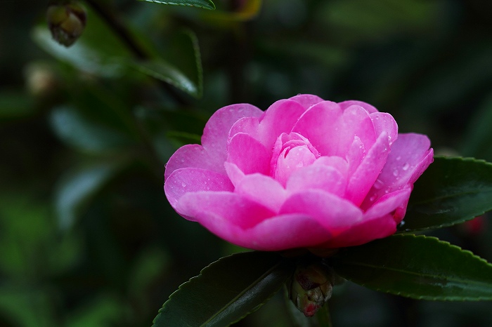 2012年 花や風景や 243 戻る 撮影(11/09) 山茶花(さざんか、Camellia sasanqua)です。 いつも訪れている公園に咲いています。とても綺麗な花で、毎年楽しみにして います。今年も八重が見事に開いています。 (Canon) EOS 60D EF100mm F2.8L Macro IS USM