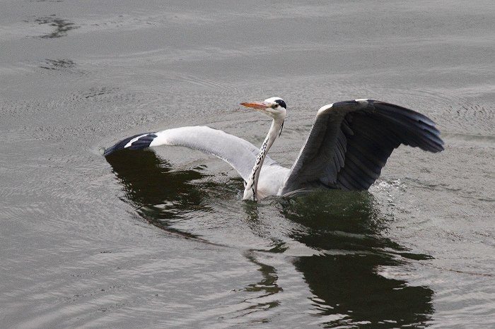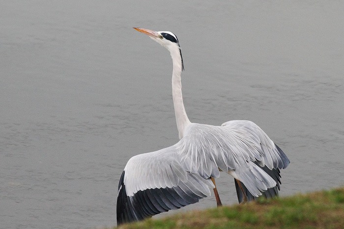 き、川に下りました。右の翼(写真の左)の恰好を見ますと、此のアオサギ