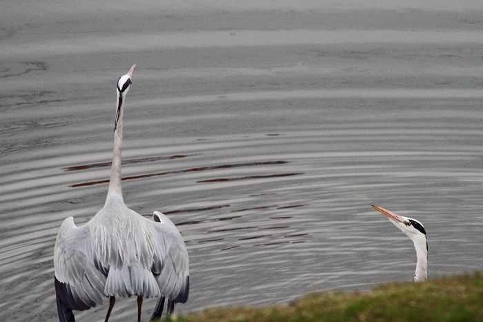 写真の左方向から近づいて来て、「写真1」のアオサギを威嚇している姿