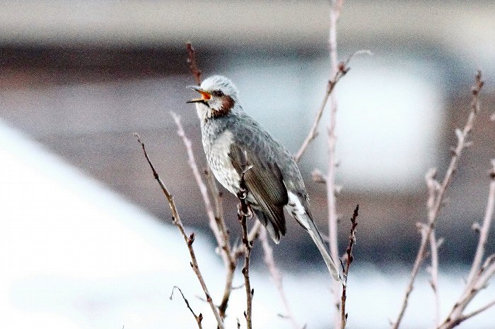 2013年 ヒヨドリ 001 戻る 撮影(01/01、01/06) (写真1)撮影01/01 元旦には1羽で来ました。これは我が家の近くで生まれ育った個体だと 思います。少し幼い感じの顔です。 昨年は我が家の庭に雛を連れて来て、餌を与える光景を見せてくれまし た。 (写真2)撮影01/06 上とは別のヒヨドリです。今年も雛の姿を見られるかも知れません。 (Canon) EOS 7D EF400mm F5.6L USM