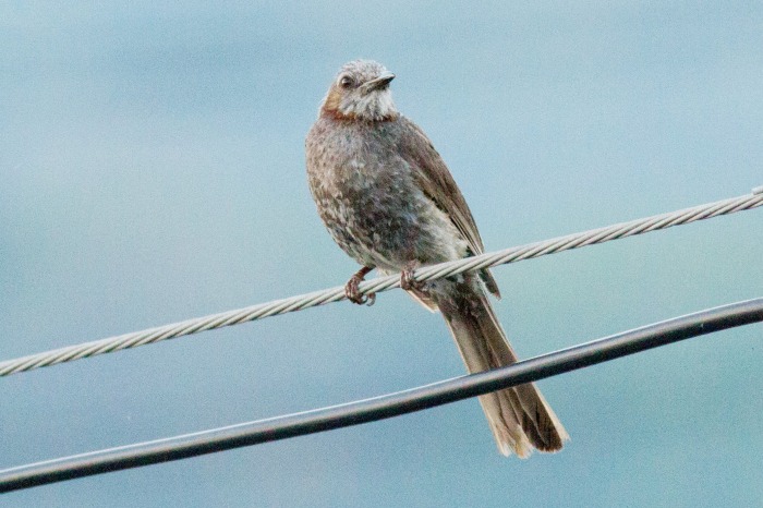 耳の近くを猛速で飛びますから、ヒヨドリはびっくりしてツバメを見ています。