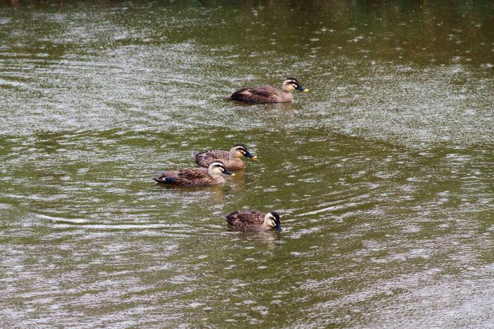 窓外水域の我が家の前辺りに、3羽のカルガモが寝泊まりしています。