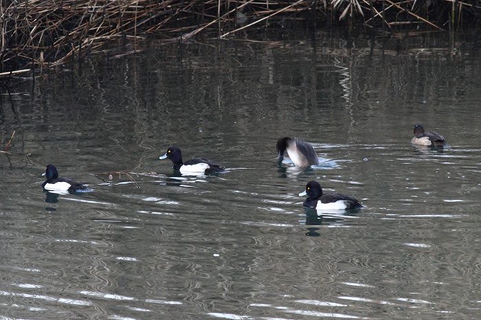 現れて賑やかでした。♂3羽と♀2羽です。♀の1羽は川に潜る直前の姿