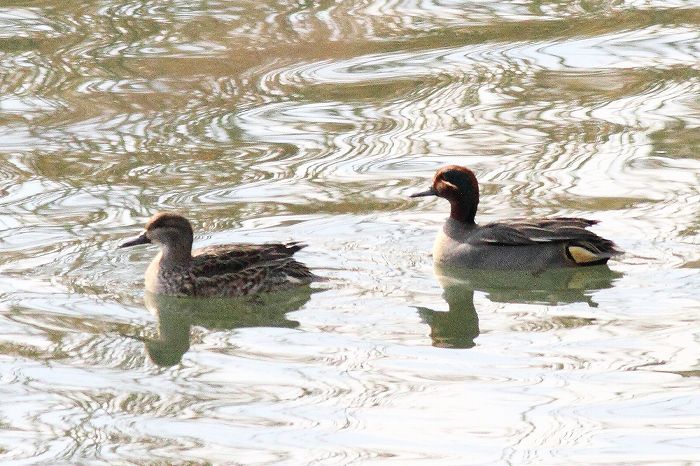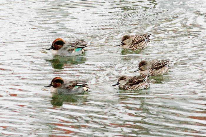 スタイル、です。コガモは♀も盛んに求愛ディスプレイしま。此のヘアスタイ