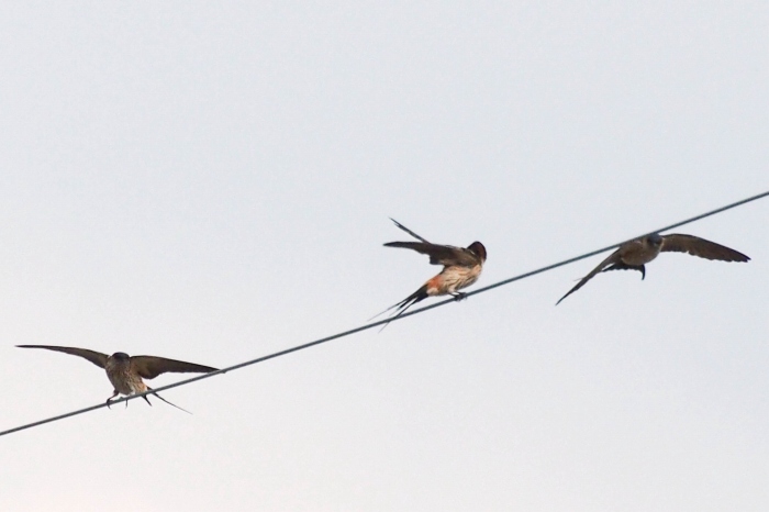 ツバメ(Hirundo rustica)に似ていますが、下面に黒褐色の縦斑がありま