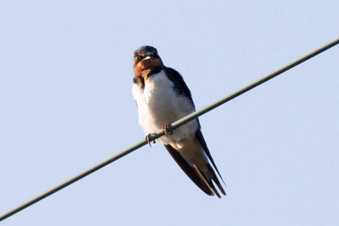 アカツバメの集団と一緒に電線にとまっていました。おそらく、はぐれツバメ