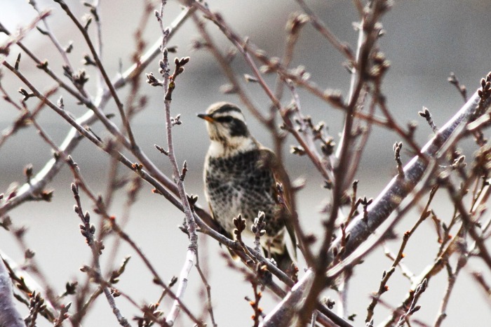 この時期に来るツグミ科の鳥で、よく見られるのはシロハラ(Turdus pallidus)