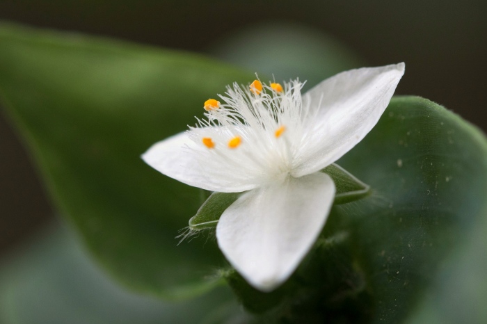 2013年 花や風景や 125 戻る 撮影(06/01) トキワツユクサ(常盤露草、ときわつゆくさ、Tradescantia fluminensis) です。 庭で咲いた花を載せています。 (OLYMPUS) OM-D E-M5 M.ZUIKO DIGITAL ED 60mm F2.8 Macro