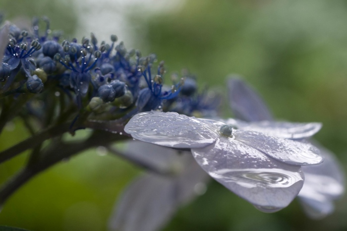 2013年 花や風景や 139 戻る 撮影(06/19) 待ちに待った恵みの雨が降りましたので記念撮影しました。カメラやレン ズが雨に濡れましたが、恵みの雨ですから、気にせずに撮りました。 こういう場合、防塵・防滴、は安心気分になります。 庭に鎮座しているガクアジサイ(額紫陽花、がくあじさい、Hydrangea macrophylla)です。 (OLYMPUS) OM-D E-M5 M.ZUIKO DIGITAL ED 60mm F2.8 Macro