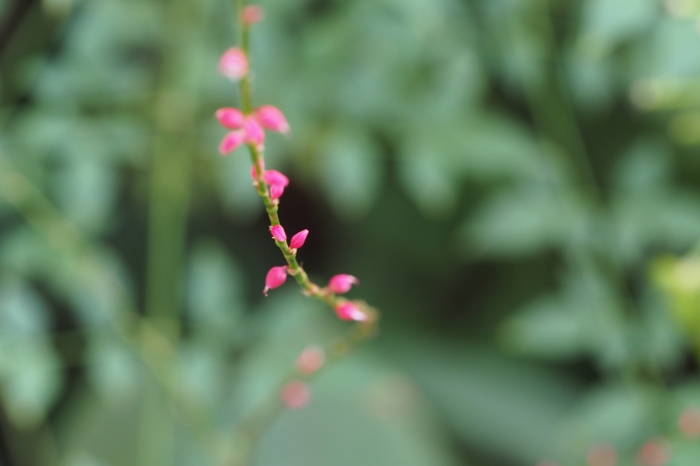 2013年 花や風景や 167 戻る 撮影(08/13) 庭のあちこちに細身の姿を現しています。 ミズヒキ(水引、Antenoron filiforme)です。花が撮れましたら再び載せる 予定です。 (OLYMPUS) PEN E-P5 M.ZUIKO DIGITAL ED 60mm F2.8 Macro