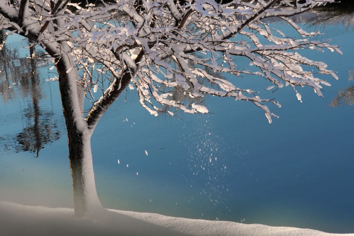 なった桜木にくっついた雪が、陽光に解けて落ちる様です。