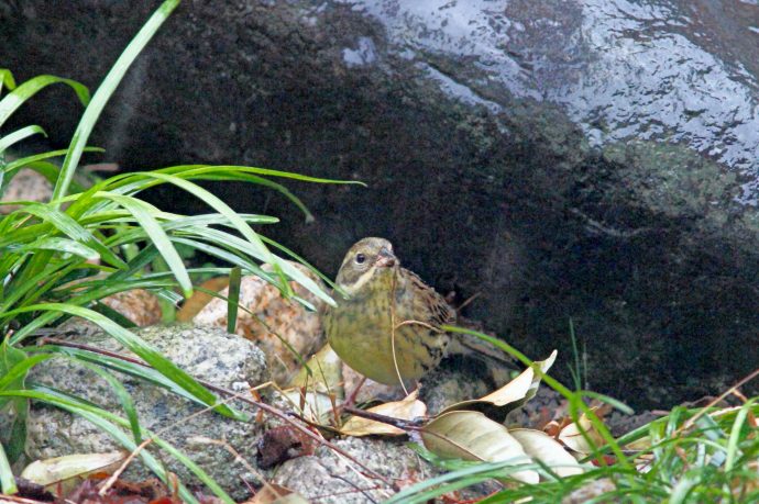 下面の胸以下は淡黄色ですが、胸には緑灰色の縦斑があります。上嘴は暗褐