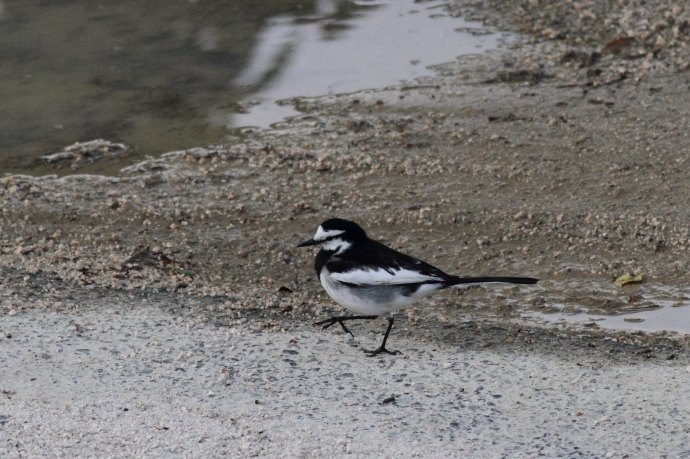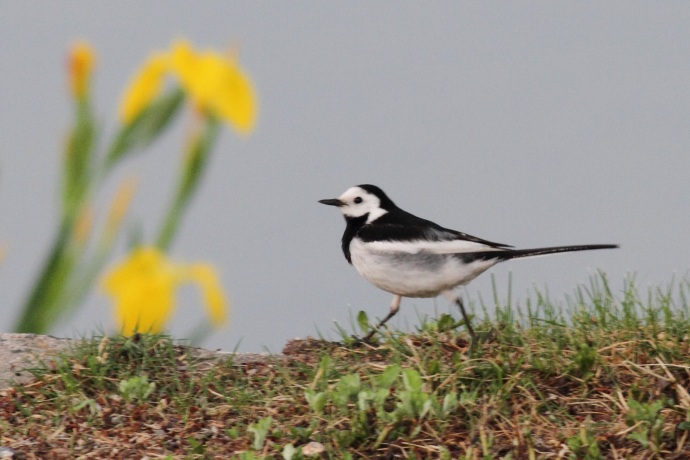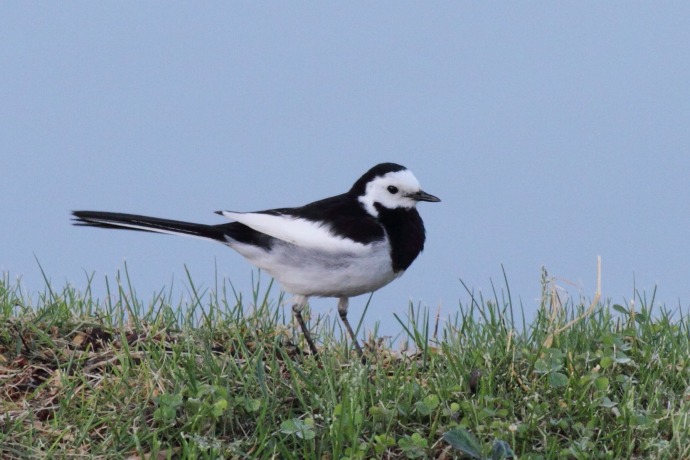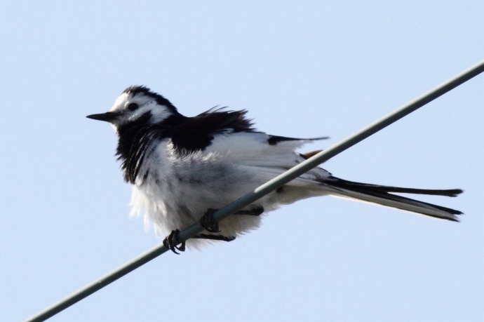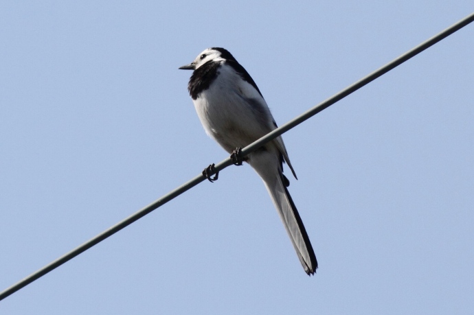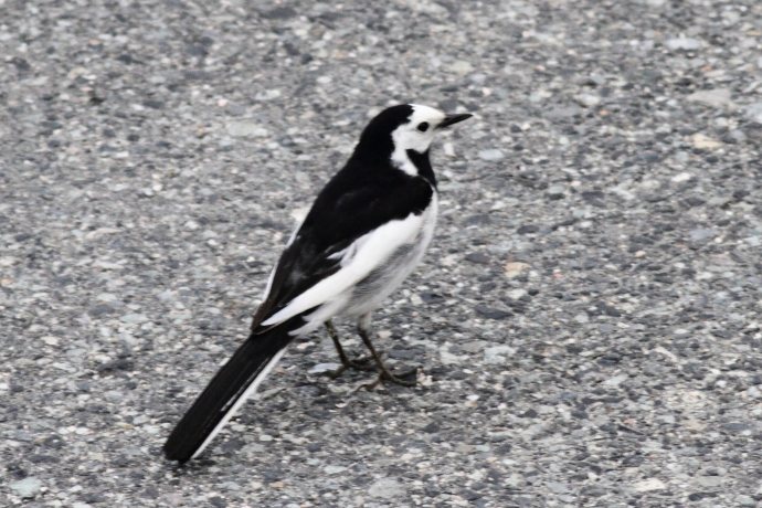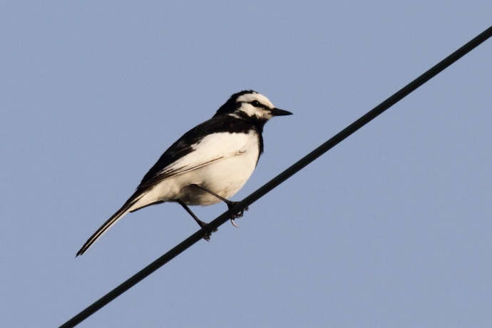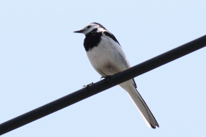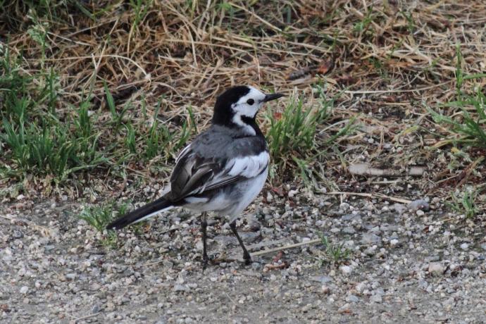 額が広く、黒い過眼線が明瞭です。普通に見られるハクセキレイです。