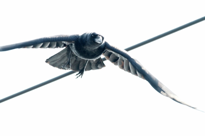 ハシブトガラスより小さく、嘴は比較的細く短く、先端はそれほど湾曲していま