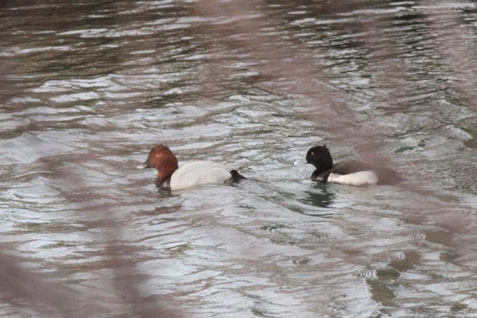 他のホシハジロはそれを見て離れて行きます。顔見知り関係というのは少し不