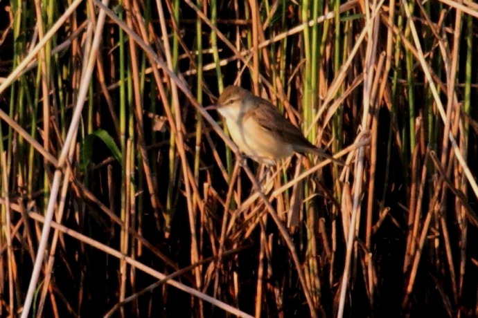 両側の眉斑の上に少し黒っぽい線が見えますが、コヨシキリはもっと黒くて