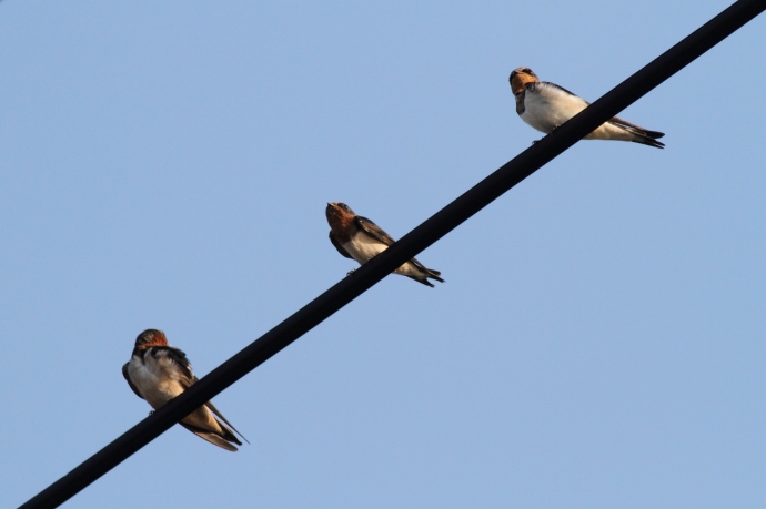 29日、電線に30羽くらいのツバメがずらりと並んでいたのでびっくりしまし