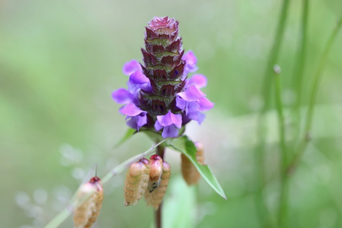 2014年 花や風景や 119 戻る 撮影(06/08) いつも訪れている公園に、この花が開き始めると、6月になった、という感 覚が湧きます。 ウツボグサ(靫草、Prunella vulgaris subsp. asiatica)です。 下にくっついているのはコバンソウ(小判草)です。 (Canon) EOS 6D (タムロン) SP 90mm F/2.8 Di MACRO 1:1 VC USD