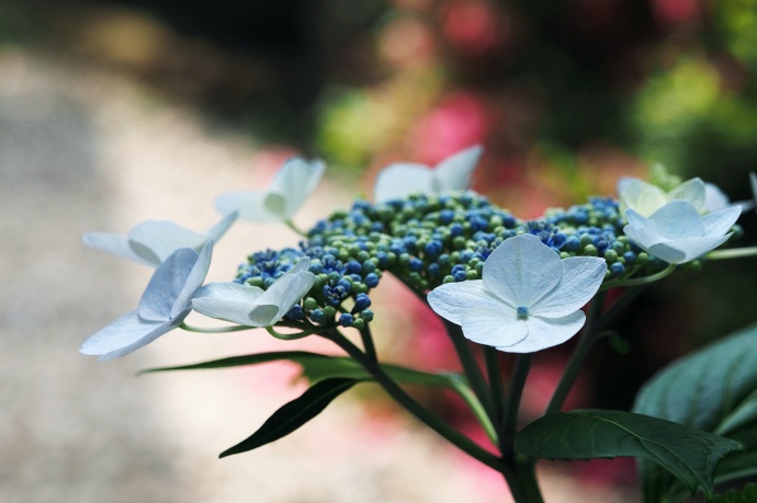 2014年 花や風景や 124 戻る 撮影(06/14) ガクアジサイ(額紫陽花、Hydrangea macrophylla)です。 我が家の庭は、種々雑多な植物やら品物が所狭しと在りますので、写真 は絞り開放付近で撮り、周囲をぼかす事に専念しています。 例えばバックに赤い物が在りますが、ツツジ属です。 庭に見られる花などを載せています。 (OLYMPUS) OM-D E-M1 M.ZDE 60mm F2.8 Macro