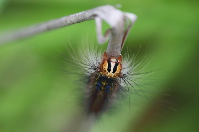 2014年 花や風景や 127 戻る 撮影(06/17) いつも訪れる公園で、あちこちに毛虫が見られます。 美しい姿に変身してレンズの前でハイポーズをして欲しいものです。 (Canon)EOS 5D Mark II (タムロン)SP AF 180mm F/3.5 Di MACRO