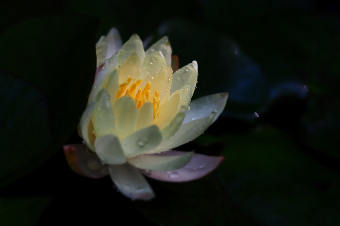 2014年 花や風景や 138 戻る 撮影(07/02) 今日、または今日から5日間を、雑節の半夏生(はんげしょう)と言うのだ そうです。 この日に咲いた庭の花は、このスイレンとバラでした。水滴は打ち水の水 です。スイレンでは3番目に開花した花です。 (OLYMPUS) OM-D E-M1 M.ZDE 60mm F2.8 Macro